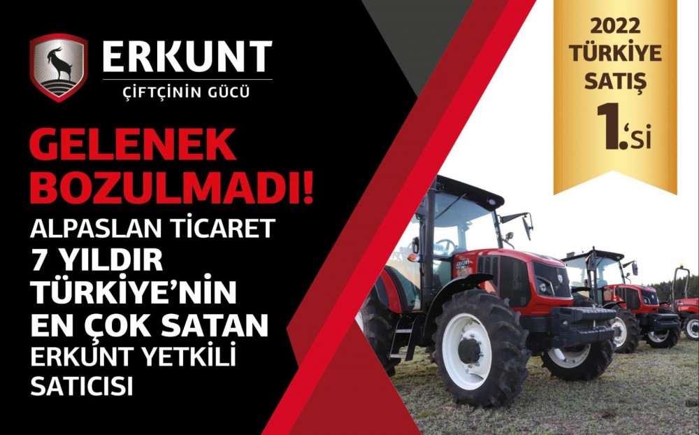 Alpaslan, Türkiye'nin yerli markası Erkunt traktörün bölge bayisi olarak 2022 yılında sıfır ve ikinci el traktörde 2.500 adete yakın satış rakamına ulaştıklarını belirterek 50'inci yılımızda da ilk gün ki heyecan ve azimle çalışmaya devam ettik. 7 Yıl üst üste Türkiye satış birincisi olarak yeni bir rekora imza attık. Yarım asırdır olduğu gibi çiftçilerimizle el ele verip ülke tarımına ve ekonomisine katkı sağladıklarını belirtti. Alpaslan Ticaret Yönetim Kurulu Üyesi Mesut Alpaslan yaygın servis ağımız ve mobil servislerimizle gece gündüz çiftçilerimizin sorunlarını çözüme kavuşturduk. 2023 yılında da bu başarıları devam ettirmek için daha çok çalışmayı kendimize hedef belirledik. Türkiye'nin en büyük yerli markalarından biri olan erkunt traktör'ün en büyük bayisi olmamızı sağlayan çiftçi dostlarımıza ve tüm çalışanlarımıza sonsuz teşekkür ettiklerini ifade etti. Antalya Titanic Mardan Palace Otel'de gerçekleşen Erkunt Traktör Türkiye'nin en başarılı bayileri ve satış birincisi törenine Alpaslan Ticaret Yönetim Kurulu Başkanı Ahmet Alpaslan, yönetim kurulu üyesi Mesut Alpaslan, Şanlıurfa finans müdürü Adnan Çelepçıkay, Nizip plaza finans müdürü Ahmet Beyazkurt katıldı.